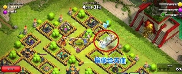 2、部落冲突狂野丛林挑战的首个难点在于多头地狱塔与投石炮的搭配,我们可以借助镜像法术来壮大天使部队,再用冰人冻住这两个建筑就行,不过关键是镜像天使得精准到位,不然女王可承受不住如此猛烈的火力。