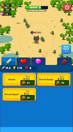 在空闲塔冲刺游戏里,玩家能够获取更丰厚的资源奖励,用来建造并强化防御炮塔,以此抵御周边的危险敌人。通过成功布置更多防御设施,打造出最坚固的防线,从而顺利完成守卫任务。