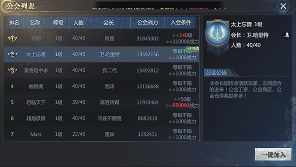在列表页面,我们能查看同区域其他帮会的相关信息,知晓对方的具体情况!毕竟知己知彼才能百战不殆。