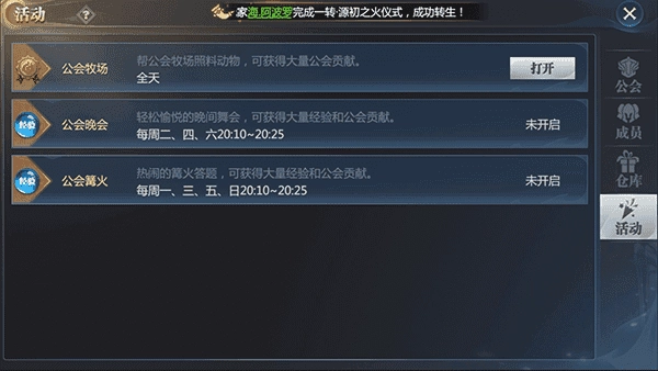 这是一个领福利的主要场所,我们能在该页面参与公会的部分活动,从而获取奖励!