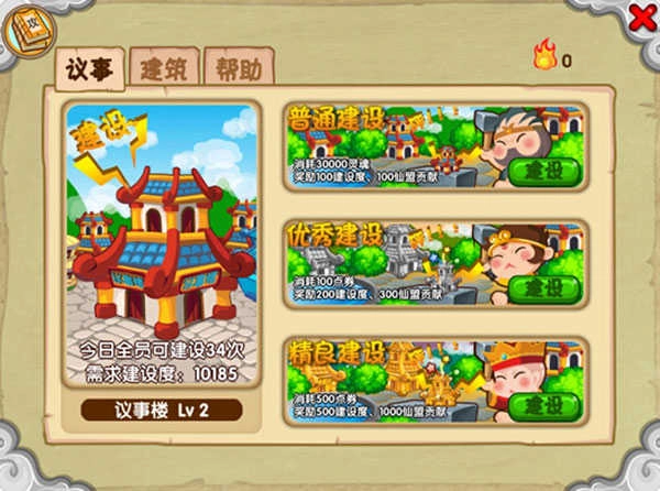 关于议事方面,仙盟等级的提升主要依靠建设获取建筑度,建筑度积累到一定程度就能让仙盟升级,而仙盟等级越高,其可容纳的成员人数也就越多。