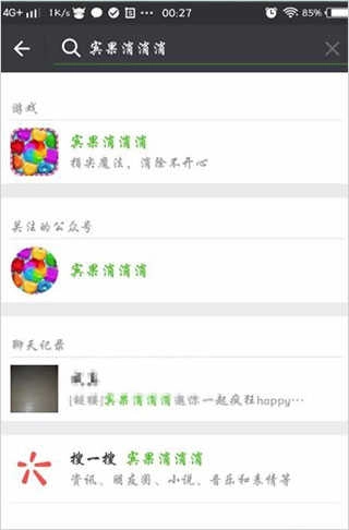5、还有一个方法是,在微信里找到添加朋友的入口,输入“宾果消消消”这几个字,页面会弹出几个选项,此时不要选择游戏选项,而是点击公众号选项。