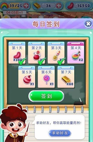 1、首先,每天首次登录宾果消消消时,系统会直接弹出签到提示,连续完成签到能获取各类奖励,其中自然包含能量瓶。