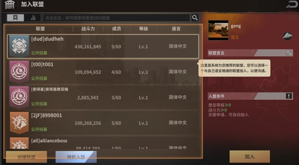 加入实力强劲的联盟,携手抱团在末世中生存,共同抵御改造人的威胁。在联盟内,盟友之间能够互相协助对方建设避难所、开展科技研究等工作;要是遭遇强大的改造人袭击或者外敌入侵,盟友可以迅速派出部队前来支援。对于刚进入末世的新手指挥官而言,联盟是你最可靠的依靠。如果有任何问题,也可以多向联盟里的资深成员请教哦。