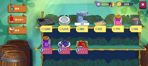 这里厨具升级的花费挺高的,咱们先去煎饼摊那边攒点钱,把等级提升了再说。