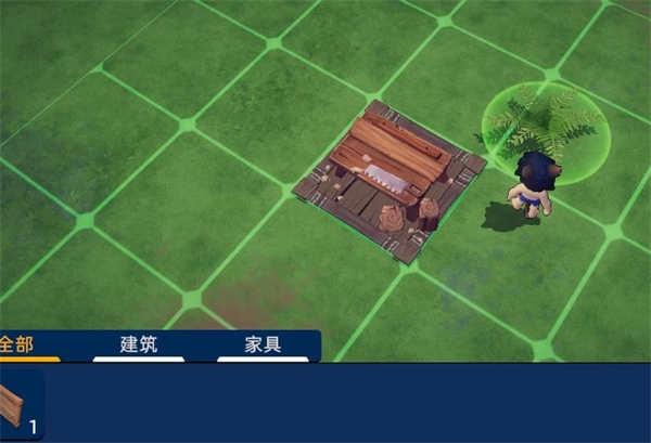 接下来要立刻把木地板做好(大部分工作台都得建在地板上哦),然后摆放好木材加工器,再把松木放进工作台里加工成松木板。