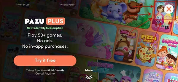 第三步:屏幕上会弹出游戏广告,找到右上方的【X】按钮点击将其关闭。