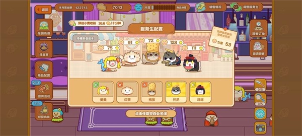 每天接待顾客能得到不少鱼饼干(务必按照顾客的喜好来备餐,要是弄错了会损失超多!!!)点击顾客就能查看他们的喜好。