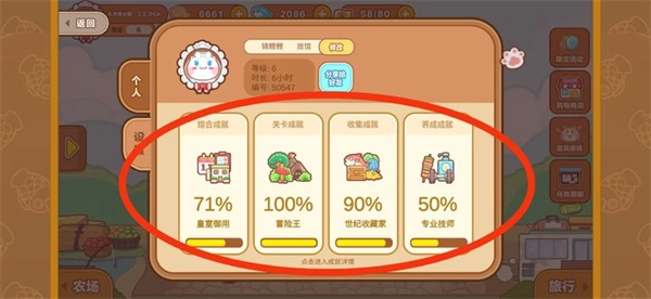 农场。在农场里,你可以安排猫猫去工作(干苦力活)来获取食材。每个区域升级之后,能得到的食材等级也会提升(建议优先升级区域来获取食材,毕竟闯关得到的食材数量太少了,而且掉落概率也让人摸不着头脑)
