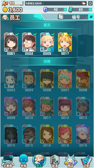 在员工界面,您可以查看当前在职雇员与待招聘的人员,同时也能在此为自己的员工进行升级操作。