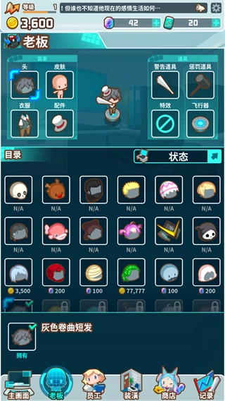 在老板界面,你可以给老板换上各种装扮,还能配备不同的警告道具。不过这些道具都得用金币购买,你得攒够足够的金币才能获取它们哦。
