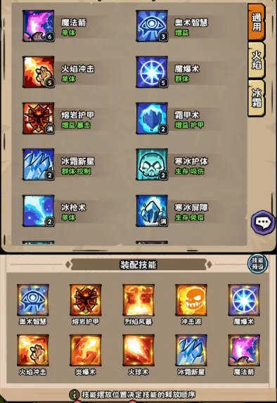 选择火焰天赋,可选择通用技能+火焰技能搭配