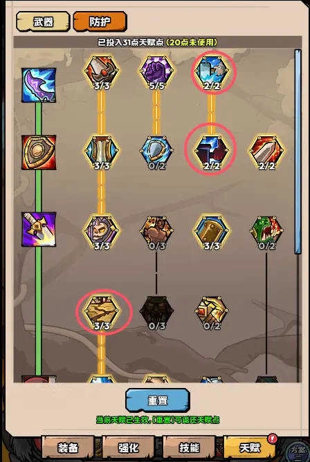 防护天赋:比较适合零氪或者小氪玩家,由于这类玩家属性通常不高,选择防战能借助其低冷却时间和流血效果,来提升挂机的效率。