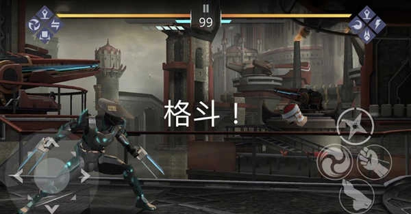进入游戏后的界面如图所示,玩家需要与敌方角色展开战斗。界面左侧的按键用于控制方向,右侧的按键则对应攻击、跳跃、下蹲等操作功能。