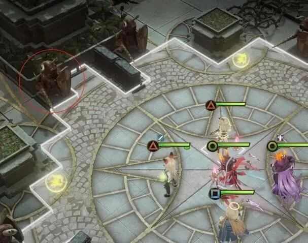 M310关卡的通关要求是炸掉上图左侧的那个雕像,不过要留意一点:当我方角色靠近到雕像周围两圈的距离内时,它就会触发变身机制成为敌人,因此在实施炸毁操作前,千万不能让角色进入这个范围触发变身。