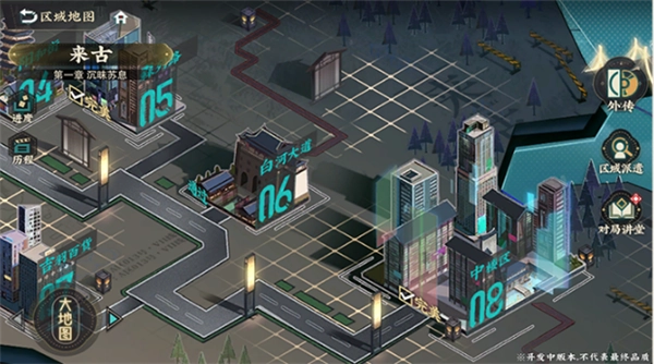 本次「破局测试」将开放1至4章的剧情事件与地图关卡。“外传”“区域派遣”以及“对局讲堂”这几个功能,会在完成指定的主线章节之后解锁开启。