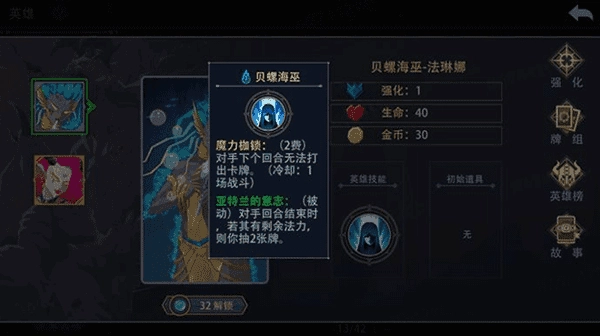 这是一位紫色品质的史诗级英雄,他的主动技能【魔力枷锁】堪称全游戏最具统治力的效果——能让对手在下一个回合里完全无法打出任何卡牌。在决定胜负的关键回合释放这个技能,其带来的战略价值完全不逊色于使用一张9费的“时光吞噬”卡牌(该卡牌效果为直接跳过对手的下一回合)。