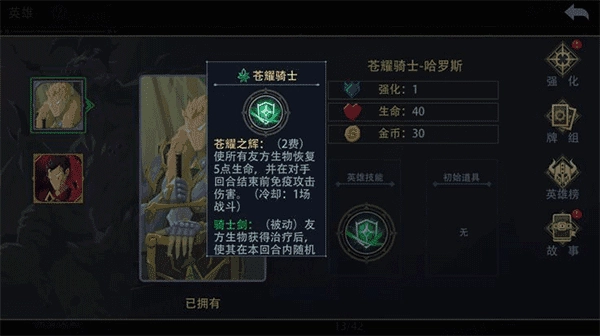 苍耀骑士是所有玩家解锁的首个英雄,同时也是游戏新手教程中的英雄。