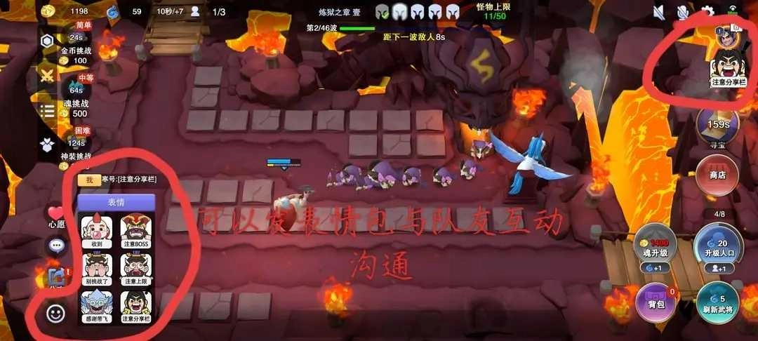 金币怪每轮出十个,魂怪出五个,神装怪只出一个(这个怪会占用十个怪的数量额度)。这些怪物的血量是依次递增的,而且魂怪在四十波之后血量会有大幅提升,建议谨慎挑战。