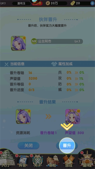 及时给伙伴进阶(进阶丹要根据实际情况分配,不建议用在过渡的乙级伙伴身上,毕竟早晚要换更强的伙伴,不如把进阶丹留着给更厉害的伙伴用)