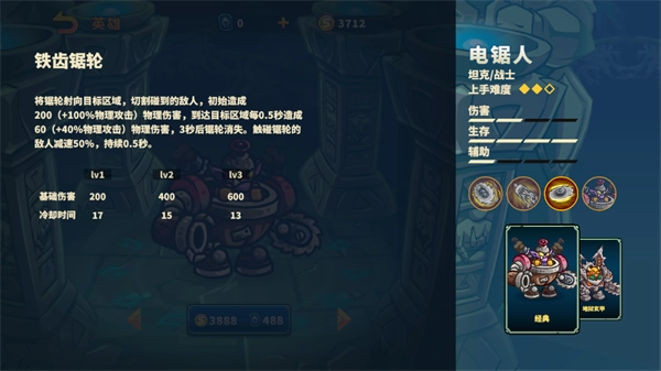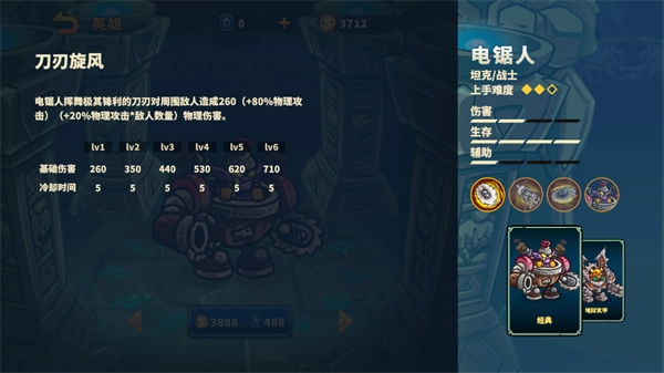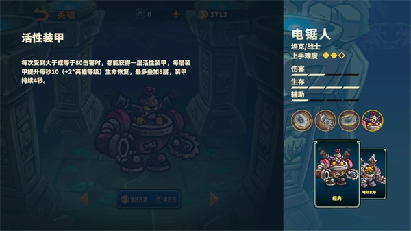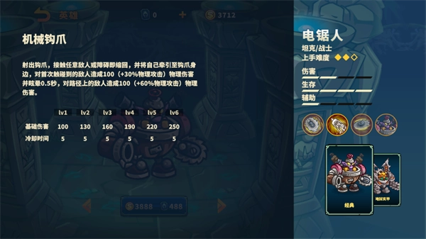 电锯人属于坦克/战士定位的英雄,不仅具备出色的生存能力,还拥有一定的输出能力。