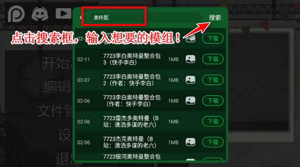 2、没找到心仪的模组?不妨在搜索栏输入你想玩的模组名称,例如“奥特曼”模组,接着点击搜索即可。
