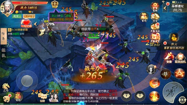 2、角色造型与技能特效:各门派角色造型独具特色,技能特效华丽夺目,战斗画面极具视觉冲击力,能充分满足玩家对修仙世界的奇幻想象。