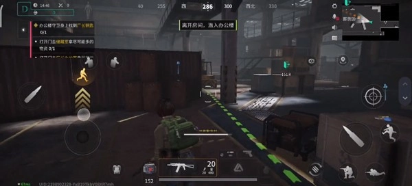 4、进入后,需切换至横屏操作模式,左侧按键用于控制移动方向,右侧则分布着射击、跳跃、蹲伏等功能按键。
