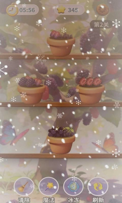 2、在限时关卡里,要先规划好消除路径,优先处理数量较多的桑葚种类,以免浪费时间。