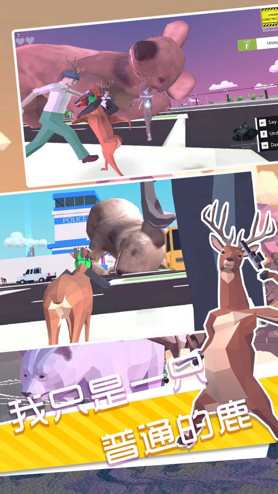 一款非常有意思的模拟器游戏,在这款游戏中玩家们可以和你的鹿哥一起在城市之中冒险,你将会代表着动物们重新觉醒,这座城市非常的大,你可以在城市之中去搜集各种武器来保卫自己,城市中的人们会对你展开猎杀,这个时候你可以去战斗哦。