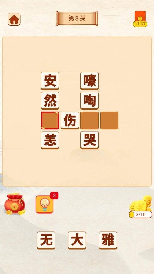 3.其实关卡整体上并不难,都是大家都知道的成语。一个目的是巩固知识,学会掌握知识,另一个目的是让你快乐。