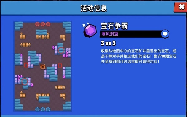 5、荒野乱斗宝石争霸(3v3):团队成员需相互配合,用策略击败对手。只要收集并守住10颗宝石就能赢得胜利,一旦被对手击倒,自己携带的所有宝石都会掉落。