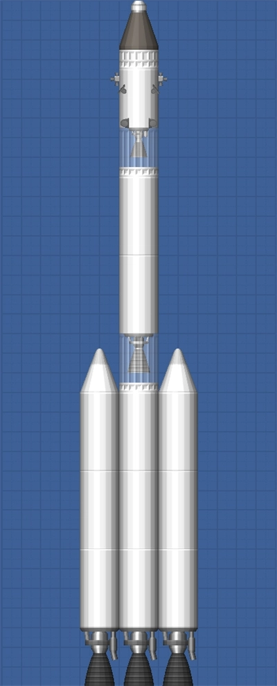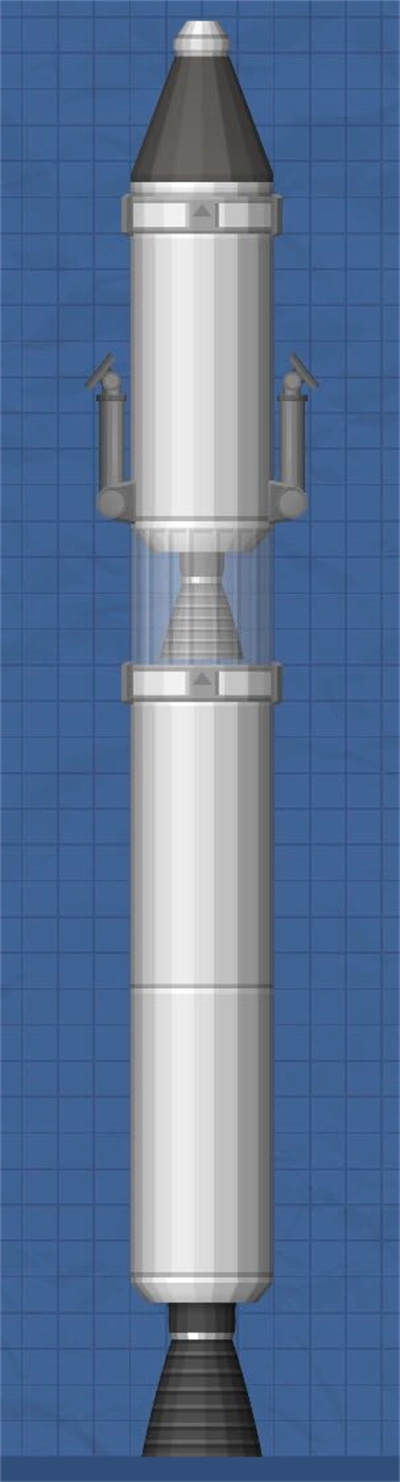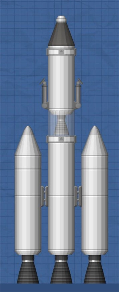 它需至少搭载一台高推力发动机,可选Hawk发动机、Titan发动机或Frontier发动机。应配备若干燃料箱,但数量不宜过多(推荐6个及以上)。同时建议加装一对燃料先耗尽的助推器,并通过侧分离器实现分级(详见图2)。助推器可在第一级主发动机启动进入轨道前提前点火。