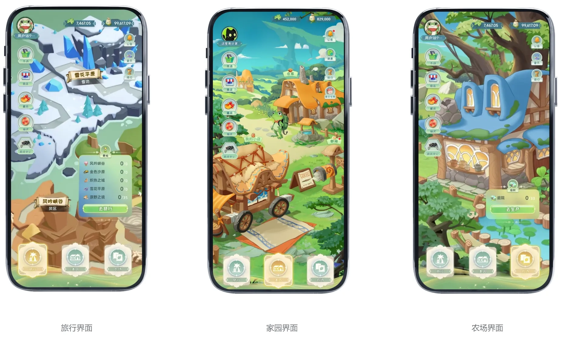 去旅行:点击【去旅行】按钮就能派遣青蛙,不过青蛙得带上食物和旅行工具才能出发。旅行结束后,它会带回明信片、特产之类的东西。特产可以拿到我的小店卖掉换成种子;要是集齐了某个地区的所有明信片,我的小店就能升级,小店等级越高,特产卖出去的价格就越好。