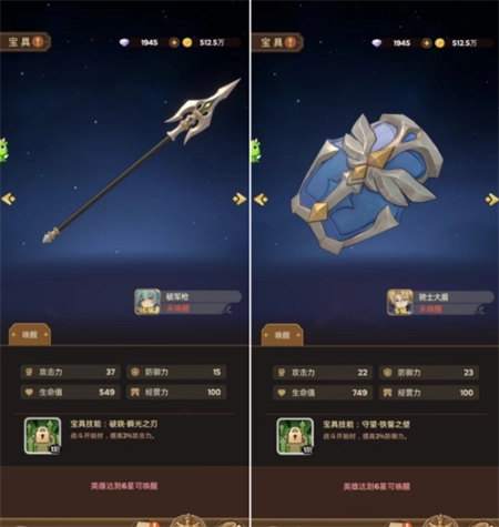 这是英雄升星到6星后开启的唤醒维度,属于中期养成阶段,和卡牌的专属武器设定有些类似。激活宝具后,英雄会获得专属的宝具技能,大多是BUFF类属性加成,能为战斗提供助力。