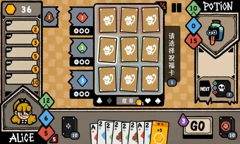 1、随机强化:从手牌中随机抽选3张,每3张为一组,从中任选其一进行升级,所选牌的点数+1;