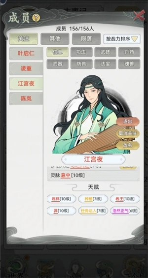 5、天赋可以适当刷一刷,但不用过度,毕竟门下一百多位弟子,就算天赋再出色,和师兄弟比起来也只是略胜一筹而已。