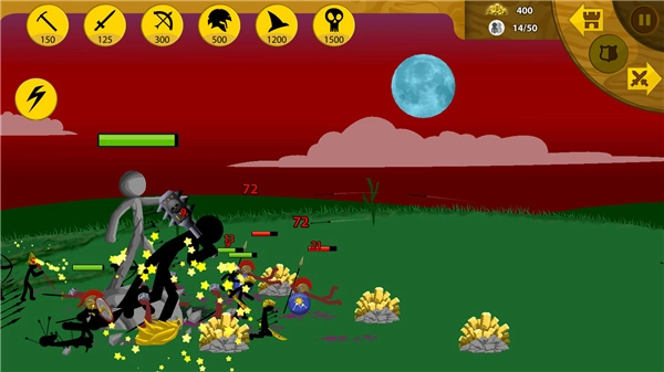 火柴人战争遗产无敌魔改版,整合了卡牌收集、塔防策略与资源收益等多元玩法。在经典战役模式里,玩家需收集黄金,征召不同类型的战斗单位,巧妙运用攻防转换的战术,击破敌方雕像,最终一统所有领地。
