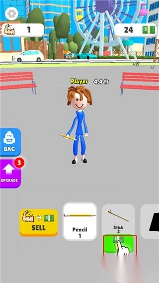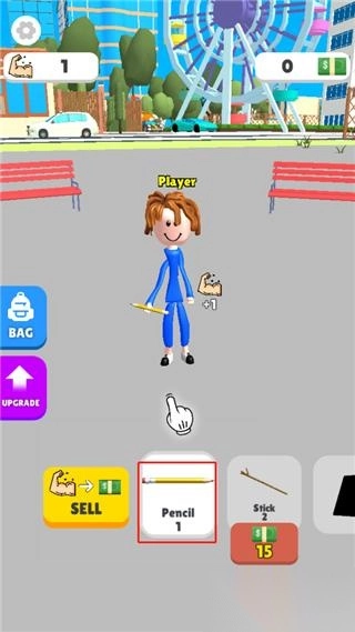 2、进入之后,角色举重的是铅笔,每次是肌肉加1;