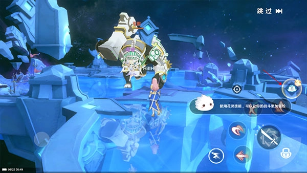7、当遇到强大的BOSS时,点击右侧的花灵技能,就能召唤出自己的小花灵,让它释放更强大的技能。