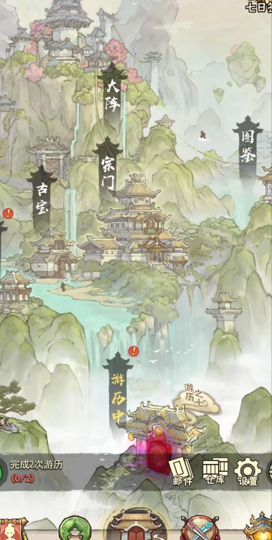 弟子的品质分为5个等级,从高到低依次是极品(彩)、卓品(红)、优品(橙)、良品(紫)、凡品(蓝)。想要解锁更高品质的弟子,同时提升高品质弟子的出现概率,需要用灵石升级宗门大阵(当前大阵最高等级为50级)。灵石的获取途径有很多,比如游历、推塔、购买礼包等。目前品质最高的是彩色弟子,这类弟子初始属性更出色,先天词条也更强。不过在游戏前期,词条对整体战力的影响不大,所以优先提升宗门大阵的等级才是关键。今天我们重点聊聊游历玩法,也就是大家常说的推图。