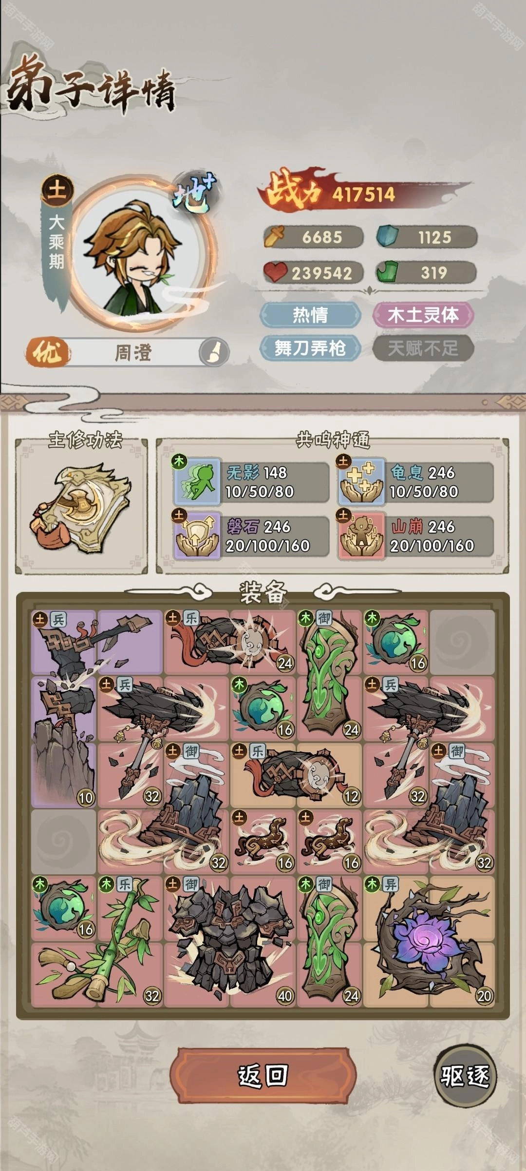 局内装备我们优先选同系的,这样成型速度更快,而且同系装备相邻还能带来一定的属性加成,有助于让装备战力达到最大化。游历结束后就是毕业答辩环节,答辩结果分为天地玄黄甲乙丙丁8个等级(像甲+、甲-这类细分情况),评级越高,能获得的灵石数量就越多。之后我们再用这些灵石提升宗门大阵的等级,通过这样循环往复的方式,不断增强自身的战斗力!