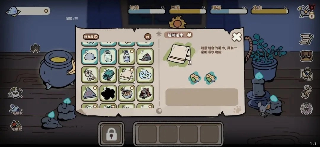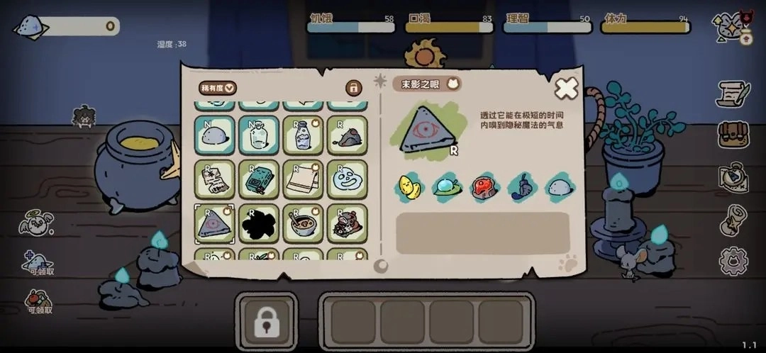降低20点湿度(雨天必备),小贴士:瞧见雨云时把小猫带到树荫底下,湿度就不会上升(不过切换日夜的话湿度还是会涨)。
