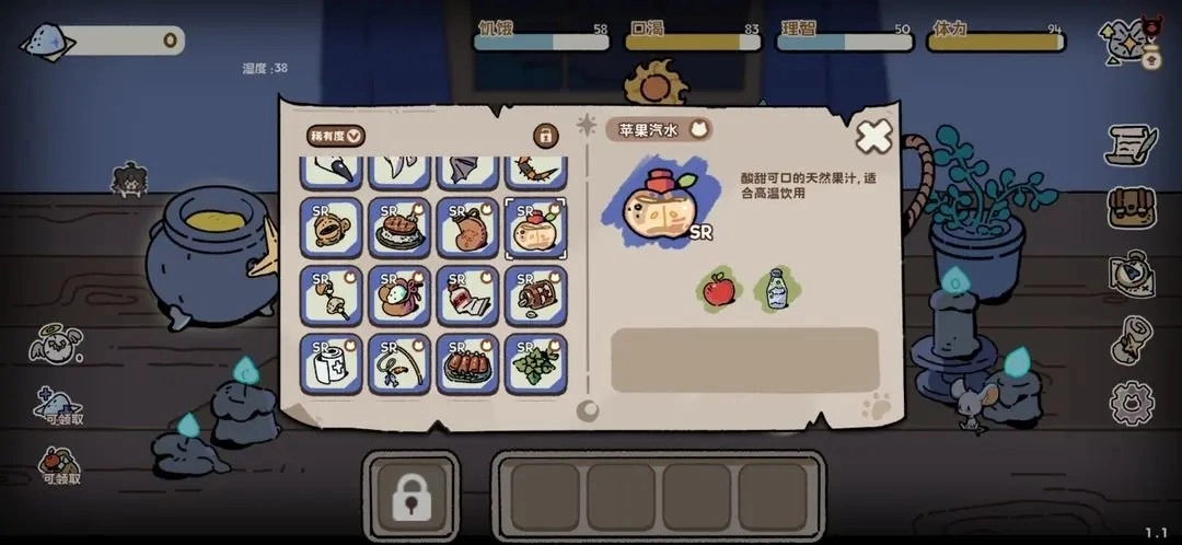 补充饥渴值与精神值,再加一只苹果可以合成苹果汁。