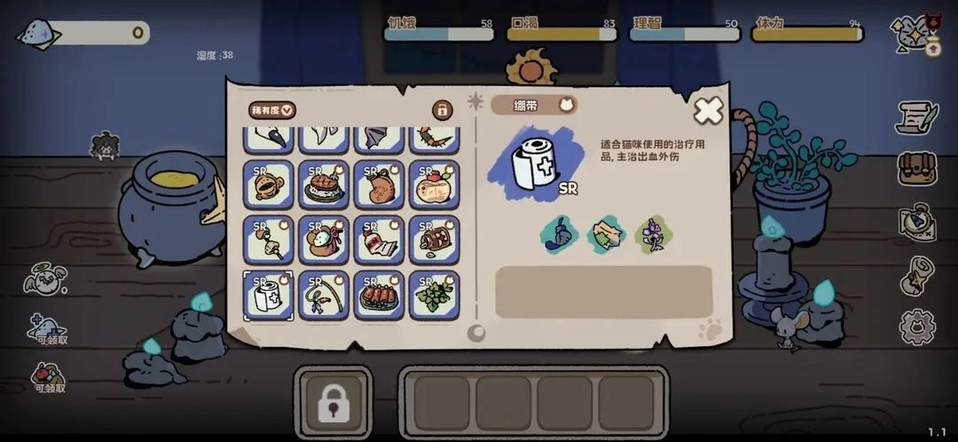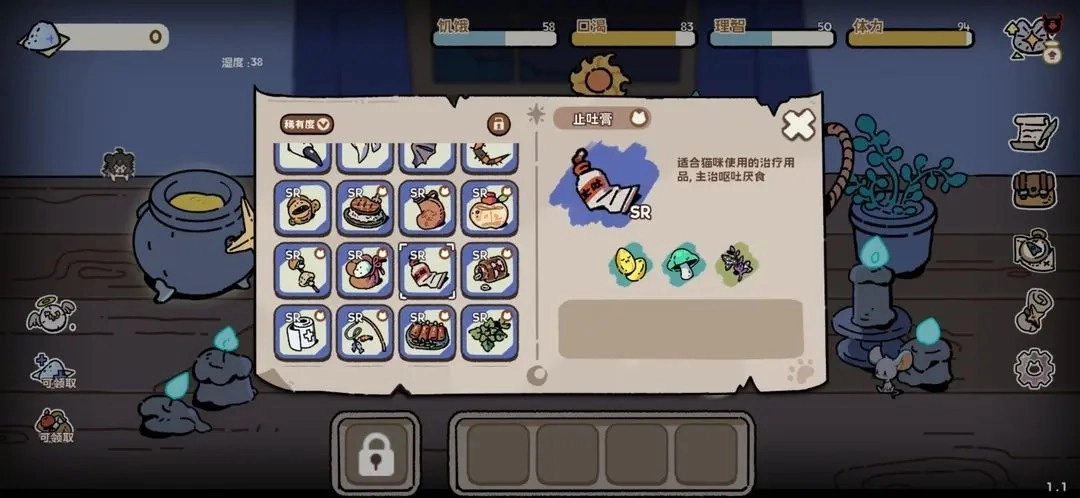 增加饥渴值与饱食值(和之前一样,吃多了会产生幻觉,要留意猫猫的毛色变绿)。