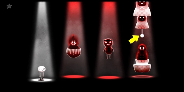 4、把中间的礼物盒打开,接着拖拽小猪使其浮空,与此同时,左边的暗影已被替换成一个玩偶。