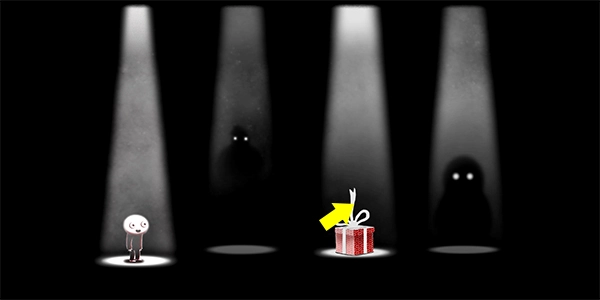 3、向右侧行进,在一片黑白交织的环境里,一个色彩鲜亮的礼物盒会很醒目地映入眼帘。