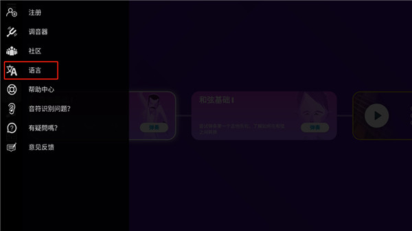 点击左上角,我们可以自行设置语言、调音器等功能,也能进入社区和其他吉他爱好者一同学习。
