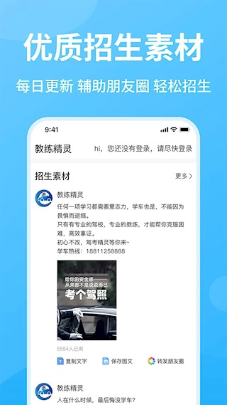 支持一键生成个人微名片和驾校宣传页面,方便借助微信、QQ等社交平台进行分享传播,助力打造个人品牌形象,开展低成本且高效率的数字化营销。