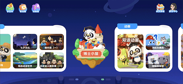 打开这款软件,孩子们能学到丰富的知识:在“学百科”板块,他们可以探索自然百科、人类百科与人文百科的奥秘;在“看动画”板块,能观看大量既有趣又涨知识的动画内容;在“动脑筋”板块,大家可以通过对各类事情的分析与互动,掌握更直接的表达方式。此外,这里还有神秘的博士小屋等待探索,感兴趣的小伙伴们赶紧来体验吧!